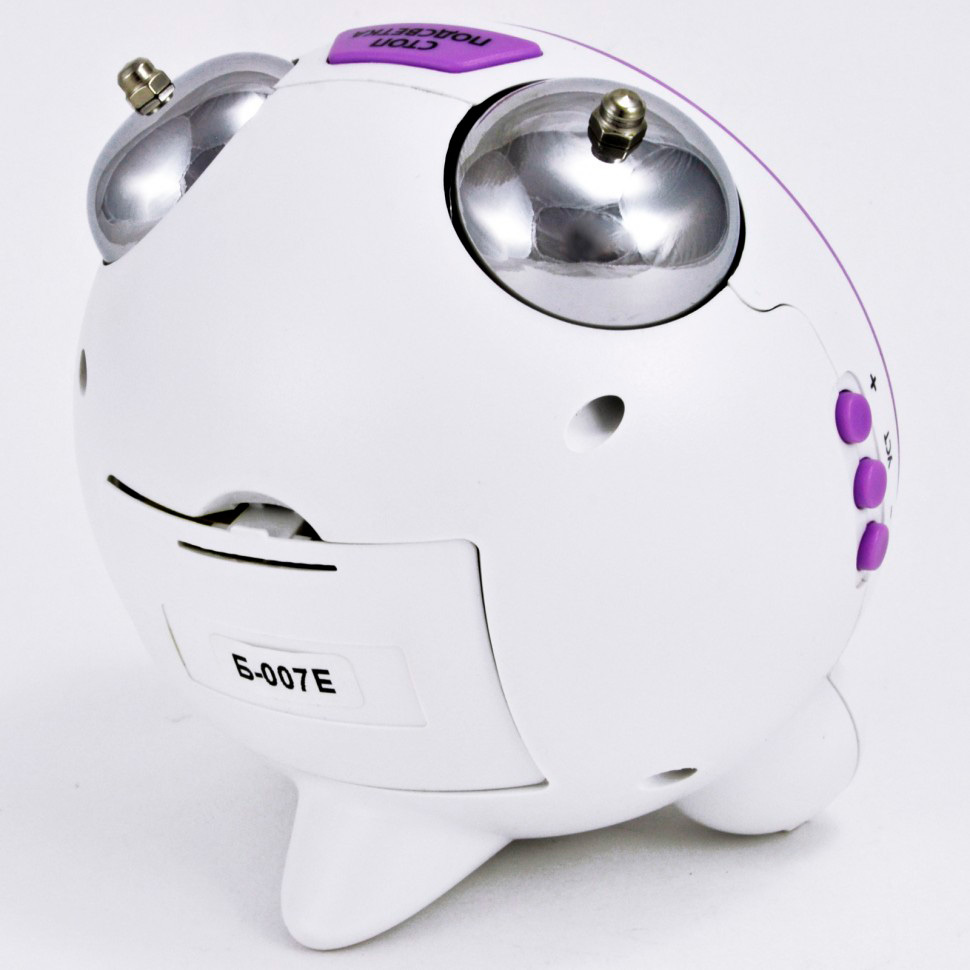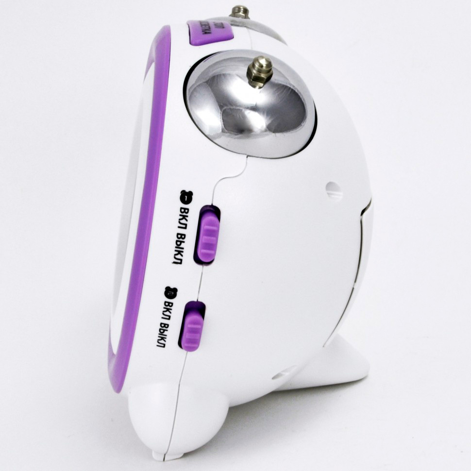 Материал и цвет: Корпус будильника изготовлен из качественного ABS пластика фиолетового и белого цвета. Стекло – пластиковое.
