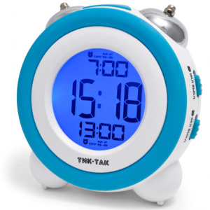 Материал и цвет: Корпус будильника изготовлен из качественного ABS пластика голубого и белого цвета. Стекло – пластиковое.