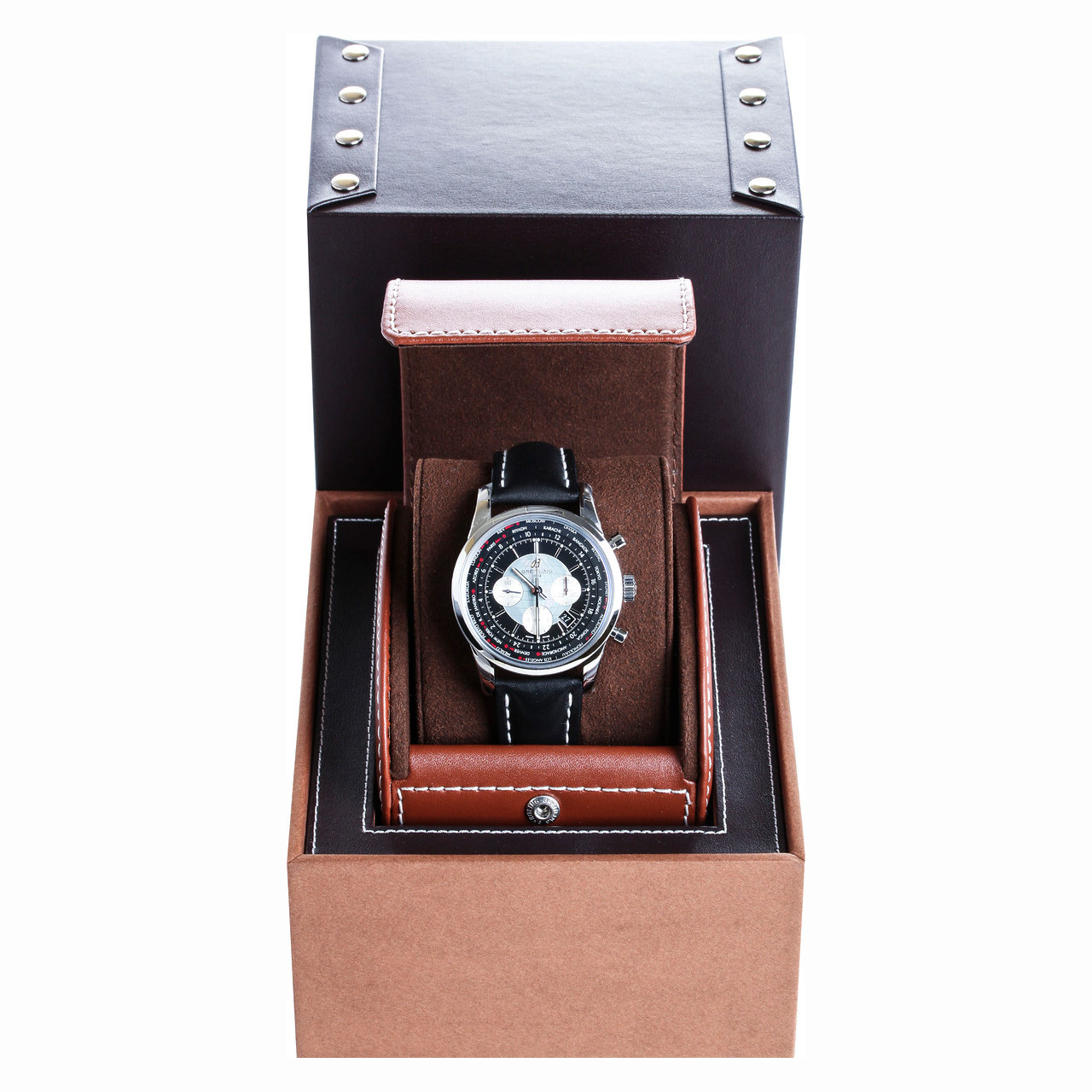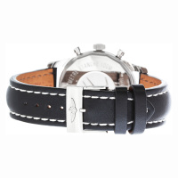 Корпус: Нержавеющая сталь, выпуклое сапфировое стекло с антибликовым покрытием с обеих сторон. Диаметр 46 мм, водонепроницаемость 100 метров. Черный циферблат, белые счетчики хронографа.