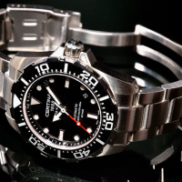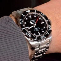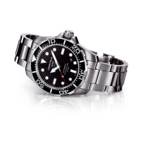 Корпус: Корпус из нержавеющей полированной/матовой стали. Вращающийся в одном направлении безель с 60 - минутной шкалой на полированном чёрном кольце. Чёрный циферблат. Стрелки и часовые индексы серебристого цвета с люминесцентным покрытием. Завинчивающаяся заводная коронка. Сапфировое стекло с антибликовым покрытием. Диаметр 43.2 мм. Водостойкость 200 м. Система DS.