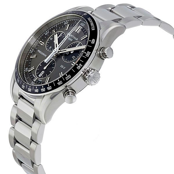 Корпус: Корпус из нержавеющей полированной/матовой стали. Безель с тахиметрической шкалой на чёрном алюминиевом кольце . Циферблат антрацит с серебристыми стрелками и рисками. Люминесцентное покрытие часовой, минутной стрелок и рисок. Сапфировое стекло с антибликовым покрытием. Диаметр 41 мм. Водостойкость 100 м. Система DS.