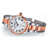 Корпус: Корпус из полированной/матовой нержавеющей стали с частичным PVD - покрытием. Белый перламутровый циферблат, чёрные стрелки и часовые индексы. Сапфировое стекло. Диаметр 32.5 мм. Водостойкость 100 м. Система DS.