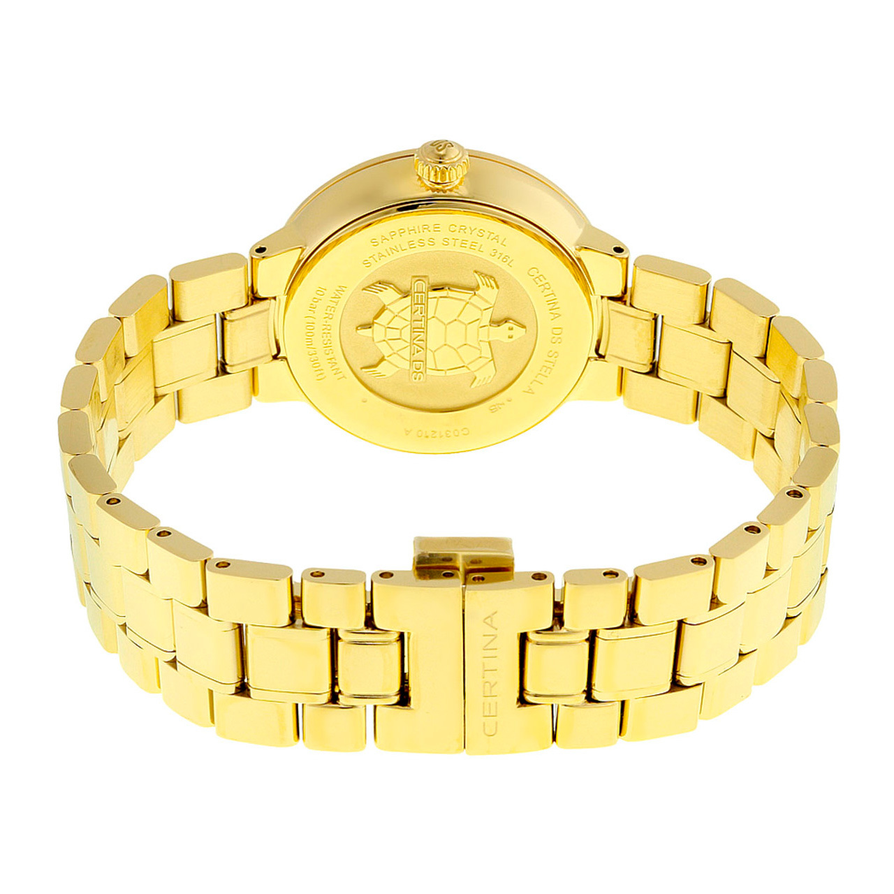 Корпус: Корпус из полированной/матовой нержавеющей стали с PVD - покрытием золота. Металлик циферблат, центральная часть украшена узором "гильоше", золотистые стрелки и часовые индексы. Сапфировое стекло с антибликовым покрытием. Диаметр 31.6 мм. Водостойкость 100 м. Система DS.