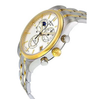 Функции: Индикация часов, минут при помощи центральных стрелок. Хронограф с 12-ти часовым, 60-ти секундным и 30-ти минутным счетчиками, индикация фазы луны и лунного цикла, индикация даты на "4" часа, вынесенная секундная стрелка на "6" часов.