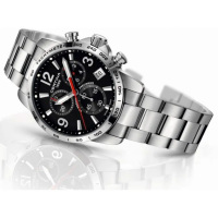 Функции: Индикация часов, минут при помощи центральных стрелок. Окошко даты на 4 часа. Хронограф. Счетчик 1/10 сек расположен в положении 2 часа, 30-минутный счетчик на 10 часов, малая секунда на 6 часов. Tахиметрическая шкала на безеле.