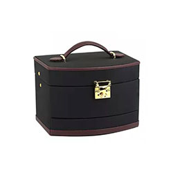 Описание: Шкатулка "Copenhagen" для украшений с автоматически открывающимися отделениями. Корпус шкатулки обтянут тканью техношелк черного цвета. Функциональное внутреннее пространство: три просторных секции с автоматическим открыванием: нижний ящик- универсальный, на среднем четыре секции, верхний содержит одну секцию для колец и одна универсальная, прикрытая сберегающей подушечкой. Зеркало с внутренней стороны верхней крышки. Надежный патентованный замок. Удобная ручка для переноски. Внутри шкатулка отделана мягкой бархатистой на ощупь тканью темно-пудрового цвета.