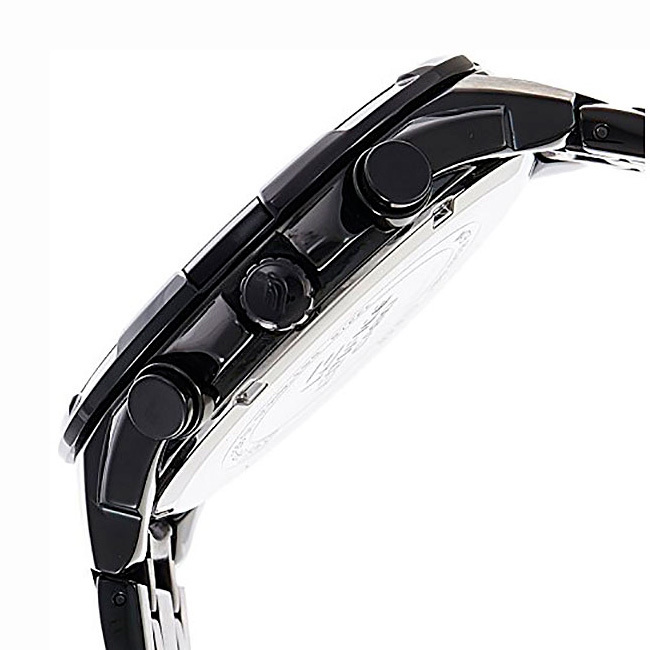 Ремешок: Корпус выполнен из высококачественной стали с повышенной устойчивостью к коррозии, поверхности с матовой шлифовкой – сатинированием и полировкой до зеркального блеска с IP покрытием чёрного цвета. Браслет с тройной раскладывающейся застежкой, расстегиваемой одним касанием.
