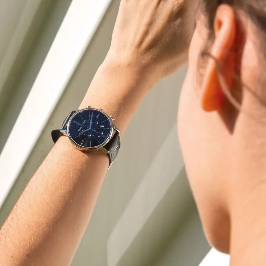 Корпус: Нержавеющая сталь, водонепроницаемость 50 метров, стекло сапфировое. Диаметр 40,0 мм. Циферблат чёрный.