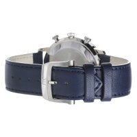 Ремешок: Синий кожаный ремешок с классической застежкой. Система быстрой замены ремешка.