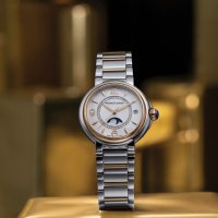 Корпус: Корпус и безель из нержавеющей стали с частичным PVD - покрытием из золота. Перламутровый циферблат украшен бриллиантами (46 штук) (? 0,80мм, SI, Wesselton, 0,124 карата). Стрелки и часовые индексы с покрытием. Выпуклое сапфировое стекло с антибликовым покрытием. Водонепроницаемость 30 метров. Размер 32 мм.