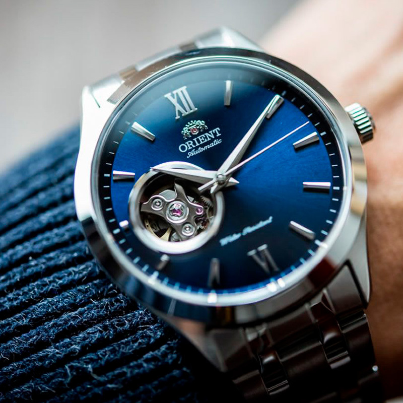 Корпус: Корпус выполнен из нержавеющей стали, поверхности с матовой шлифовкой - сатинированием и полировкой до зеркального блеска. Циферблат синего цвета с шлифовкой “солнечные лучи”. Часовые индексы и стрелки выполнены из стали. Сапфировое стекло устойчивое к возникновению царапин надежно защищает циферблат от повреждений. Прозрачная задняя крышка. Диаметр корпуса 38,5 мм. Водонепроницаемости WR 50.