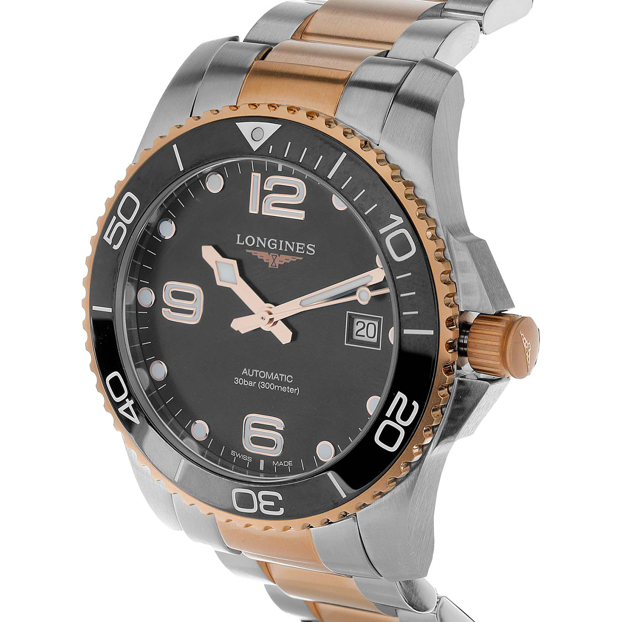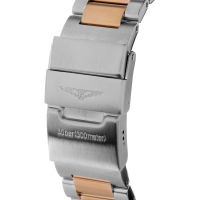 Корпус: Корпус из нержавеющей стали. Черный циферблат. Сапфировое стекло с антибликовым покрытием. Светонакопитель на индексах и стрелках. Завинчивающиеся задняя крышка и заводная головка. Однонаправленно вращающийся безель из черной керамики и стали с PVD-покрытием из розового золота. Диаметр 41 мм. Водозащита 300 м.