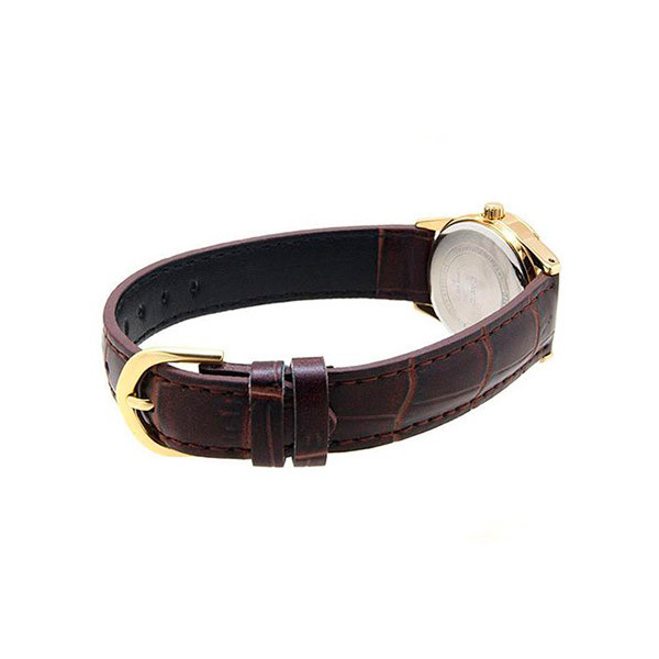 Ремешок: Кожаный ремешок коричневого цвета, стандартная застежка.