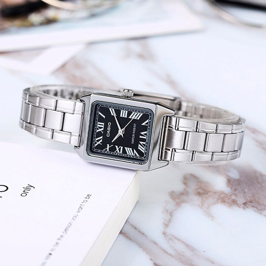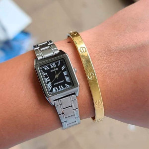 Корпус: Корпус изготовлен из гипоаллергенной латуни. Чёрный циферблат. Серебристые метки в виде римских цифр. Прочное минеральное стекло обеспечит защиту часов от повреждений. Размер 22x31x7,5 мм. Водонепроницаемость 30 м.