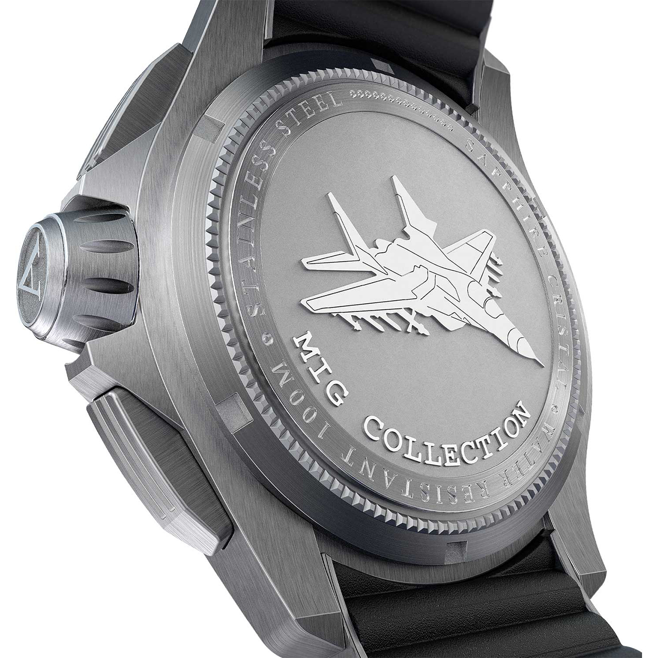 Механизм: Кварцевый хронограф.Часы выпущены в честь боевого самолёта последнего поколения МИГ-35, который занимает лидирующие позиции среди современных истребителей.