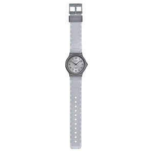 Корпус: Ударопрочный корпус часов серого цвета из полимерного материала защищает механизм от ударов и вибрации. Пластиковое стекло устойчивое к ударному воздействию. Светлый циферблат, светлые арабские цифры и стрелки. Габаритные размеры: 38,8 × 34,9 × 7,8 мм, вес 20 грамм. Водонепроницаемость: 30 м.