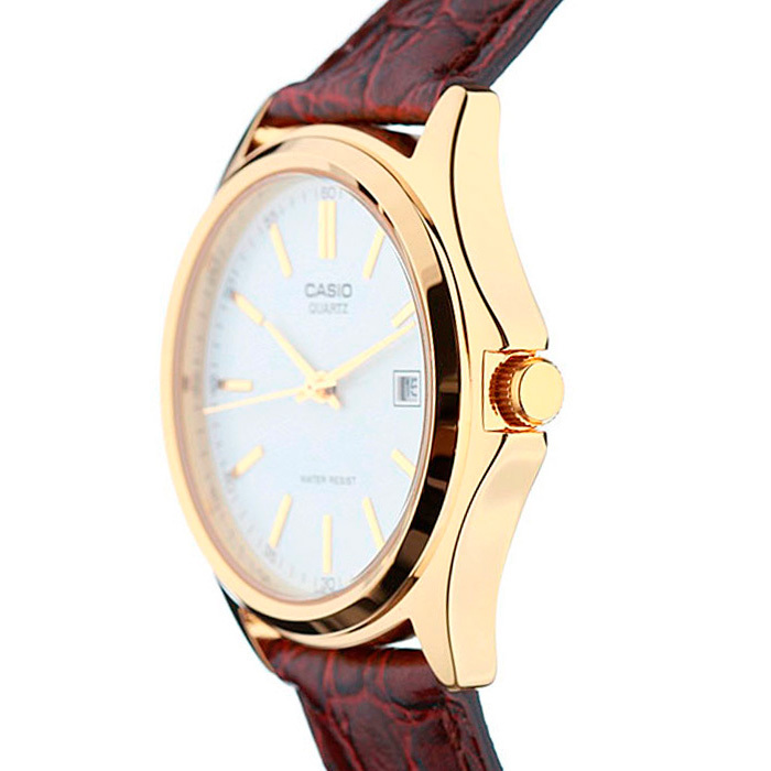 Ремешок: Кожаный ремешок коричневого цвета, стандартная застежка.