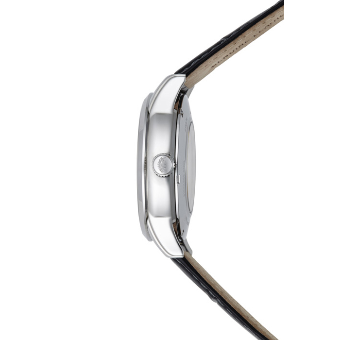 Ремешок: Черный кожаный ремешок с раскладывающейся застежкой.