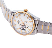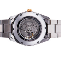Корпус: Нержавеющая сталь с PVD покрытием цвета жёлтого золота. Сапфировое стекло устойчивое к царапинам. Серебристый циферблат двухслойный, что придает ему объемный вид и привлекает внимание к движению часовой и минутной стрелок. Прозрачная винтовая задняя крышка. Стрелки и метки покрыты люминесцентным напылением что обеспечивает подсветку в темное время суток. Водозащита - 50 метров. Диаметр 41 мм.