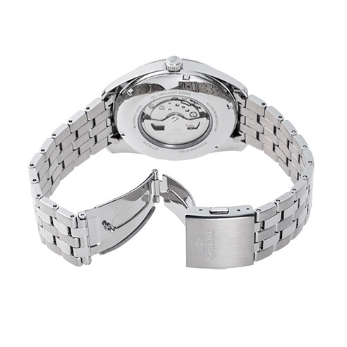 Корпус: Корпус часов выполнен из нержавеющей стали 316L. Минеральное стекло. Синий циферблат выполнен по технологии Sunray (солнечные лучи). Большие трехмерные часовые метки и крупные стрелки с гранями улучшают читаемость. Новый более широкий циферблат позволяет выделять дисплеи календаря более крупными символами, обеспечивая лучшую разборчивость. Прозрачная завинчивающаяся задняя крышка позволяет любоваться точным механическим механизмом с обратной стороны. Водозащита 50 метров. Диаметр 43,5 мм.