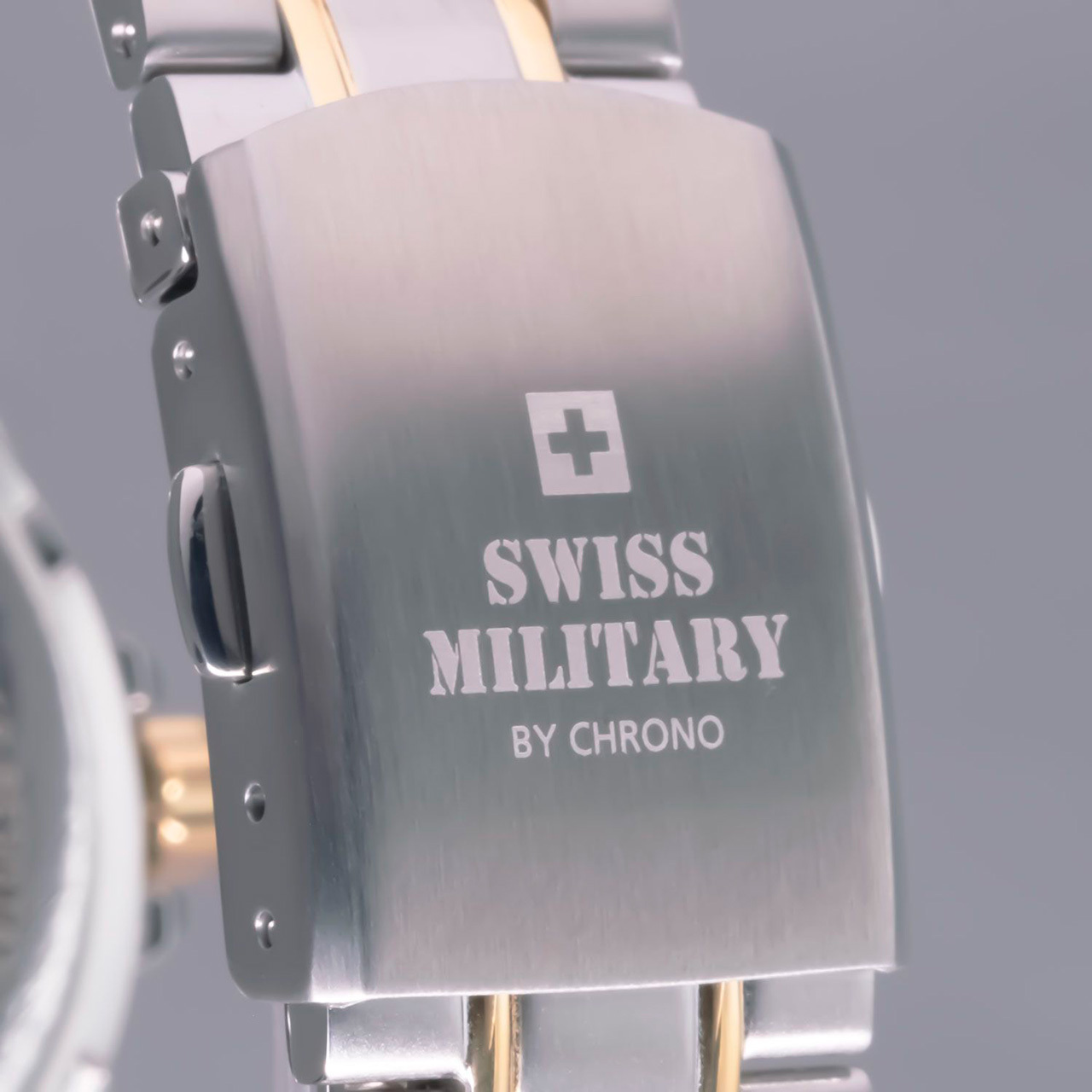 Ремешок: Браслет со звеньями из нерж. стали с частичным PVD-покрытием цвета золота, браслетная застежка, раскладывающаяся при нажатии на кнопки по бокам.