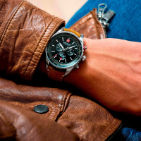 Функции: Центральные часовая и минутная стрелки. Индикация даты. Тахиметр. Хронограф.