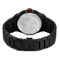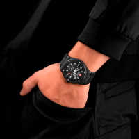 Корпус: Круглый корпус из керамики чёрного цвета. Чёрный циферблат. Накладные метки в виде штрихов. Прямоугольные стрелки в стиле Baton. Стрелки и метки с люминесцентным покрытием, которое светится в темноте после непродолжительной зарядки на свету. Сапфировое стекло защищает циферблат от царапин и обеспечивает отличную читаемость при любом освещении. Рифленая заводная головка. Завинчивающаяся задняя крышка. Диаметр корпуса составляет 43 мм. Водозащита до 10 ATM (100 метров) делает часы подходящими для плавания.