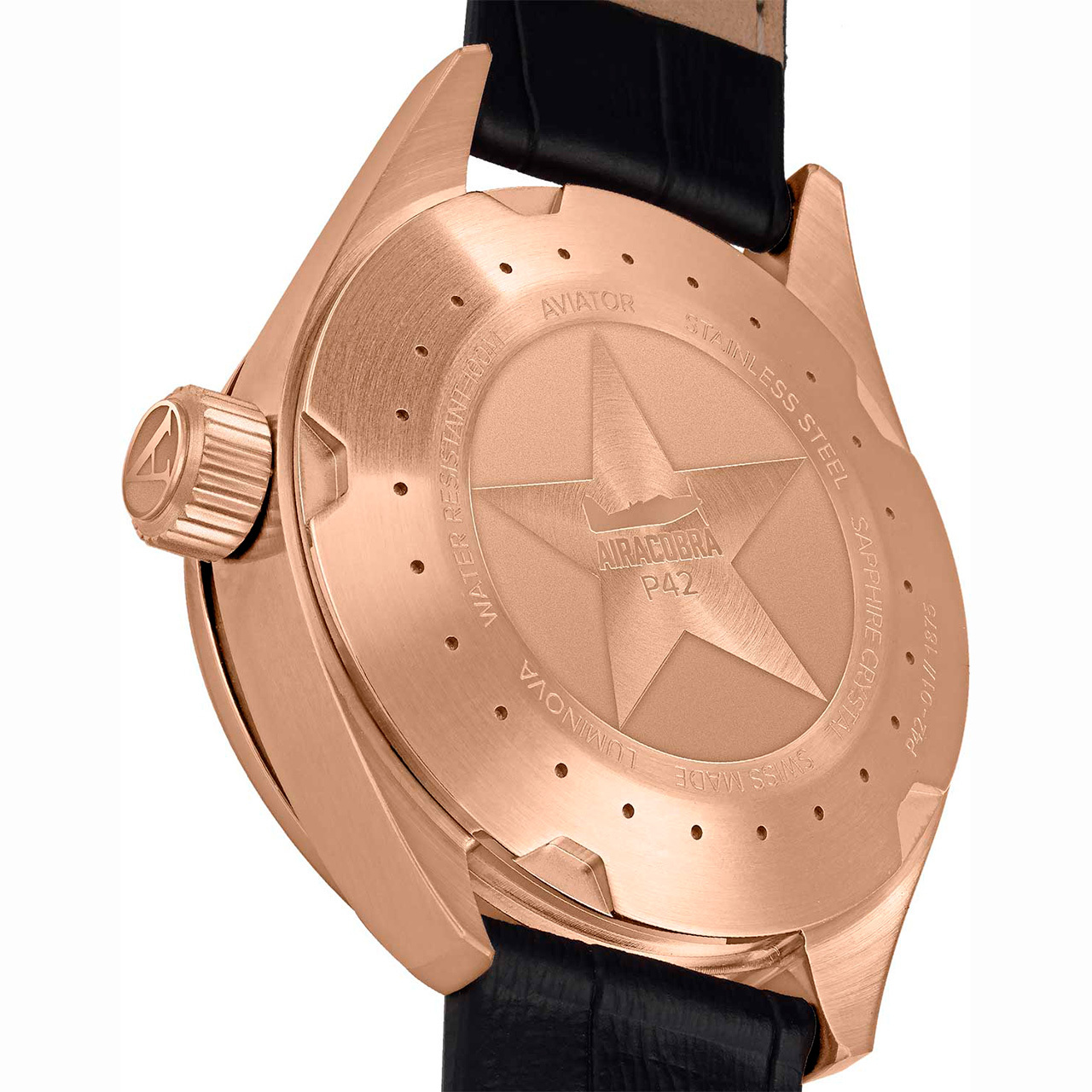 Корпус: Нержавеющая сталь с PVD - покрытием. Циферблат белый, чёрные стрелки и часовые индексы. Сапфировое стекло с антибликовым покрытием. Диаметр 42 мм. Водозащита 100 метров.