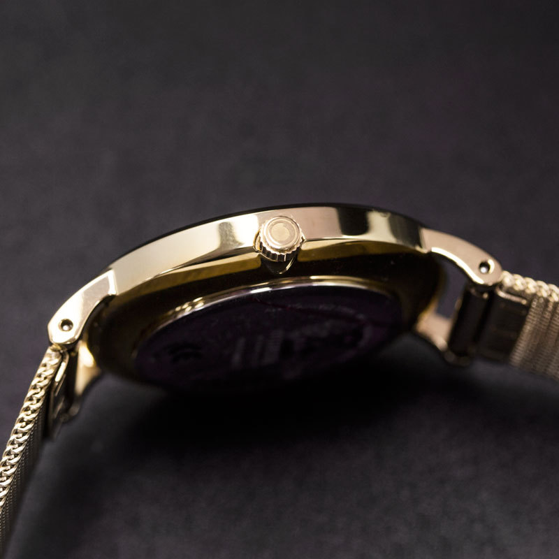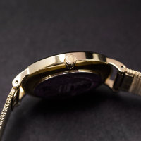 Корпус: Корпус выполнен из стали с жёлтым IP-покрытием. Минеральное стекло. Светлый циферблат. Диаметр 32 мм. Водонепроницаемость 30 метров.