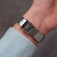 Ремешок: Плетеный миланский браслет из нерж. стали с возможностью быстрой замены. Браслетная застежка из нержавеющей стали, раскладывающаяся при нажатии кнопок двойной блокировки.