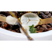 Корпус: Корпус выполнен из стали с жёлтым IP-покрытием. Минеральное стекло. Светлый циферблат с арабскими цифрами. Диаметр 30 мм. Водонепроницаемость 30 метров.