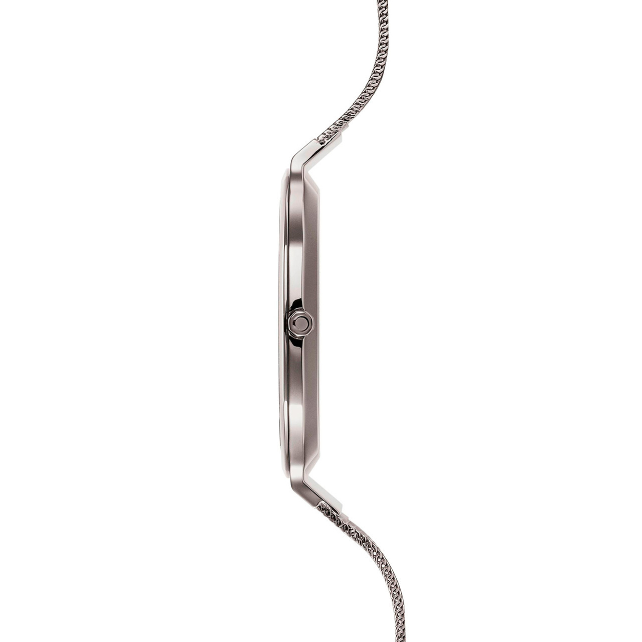Ремешок: Стальной браслет выполнен в технике миланского плетения, раскладная застежка.