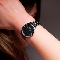 Корпус: Нержавеющая сталь. Чёрный циферблат. Минеральное стекло повышенной прочности. Водозащита: 30 м. Диаметр: 35 мм.