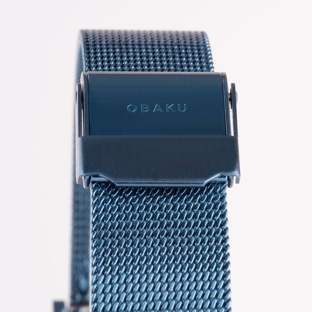 Ремешок: Стальной браслет с синим покрытием выполнен в технике миланского плетения, раскладывающаяся застежка.