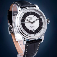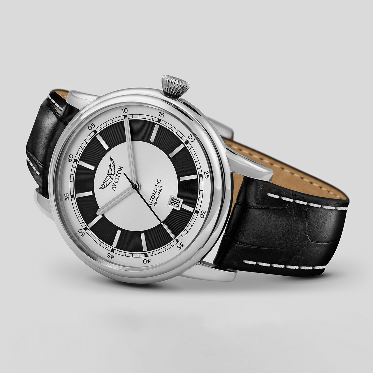 Корпус: Нержавеющая сталь марки 316L. Объемный циферблат с центральной частью серебристого цвета. Стрелки и часовые индексы покрыты люминесцентным составом SuperLuminova. Сапфировое стекло с антибликовым покрытием. Переводная коронка с двойным уплотнителем для дополнительной защиты. Задняя крышка с прозрачным окном из сапфирового стекла имеет винтовое соединение с корпусом. В оформлении задней крышки использована стилизация под один из инструментов управления из кабины самолета Douglas DC-3. Гравировка с градусами на крышке корпуса и стрелка на роторе автоподзавода имитируют функцию угла перекладки руля, которая контролирует положение передней и задней частей самолета. Водонепроницаемость 100 метров. Диаметр 45 мм.