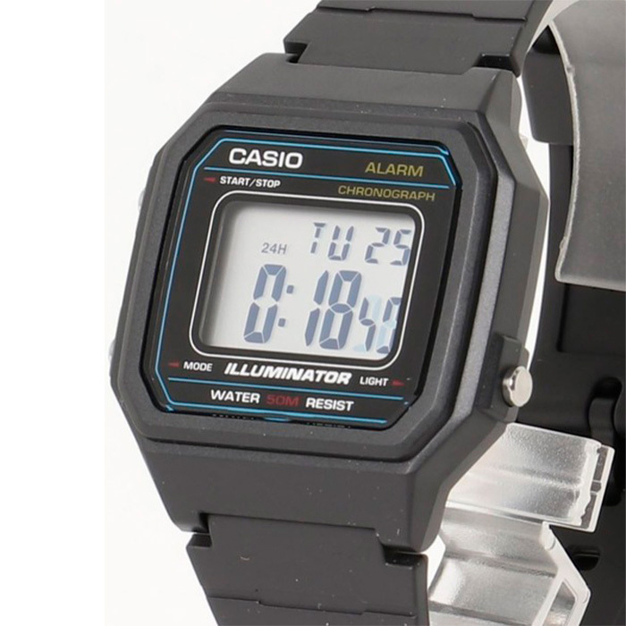 Корпус: Ударопрочный корпус часов сделан из высококачественного пластика чёрного цвета. Пластиковое стекло устойчивое к ударному воздействию. Размер корпуса (Ш x В x Г) 43,1мм x 41,2мм x 10,5мм. Водонепроницаемость: 50 м.