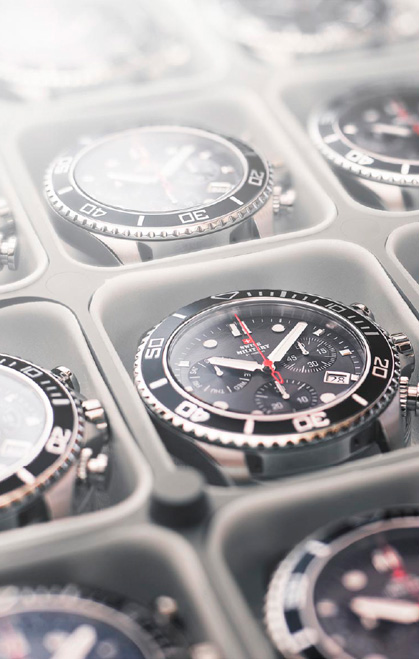 Помимо этого, каждый шаг производства сопровождается проверкой качества. Все часы Chrono AG подвергаются тщательной проверке функционирования и водонепроницаемости, а также интенсивной визуальной проверке.