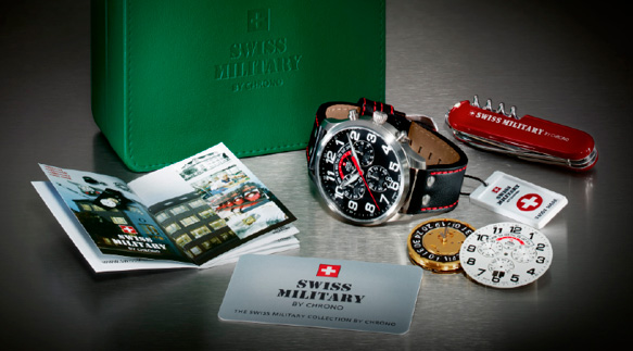 Часы Swiss Military, изготовленные Chrono AG, известны во всем мире своим выдающимся дизайном и качеством. Хронометры спортивного вида и авантюрного духа подходят тем, кто ведет активный образ жизни. Часы обладают высокой швейцарской точностью и качеством. В качестве официально лицензированного продукта Swiss Military by Chrono объединяет силы со Швейцарской Конфедерацией в создании имиджа.