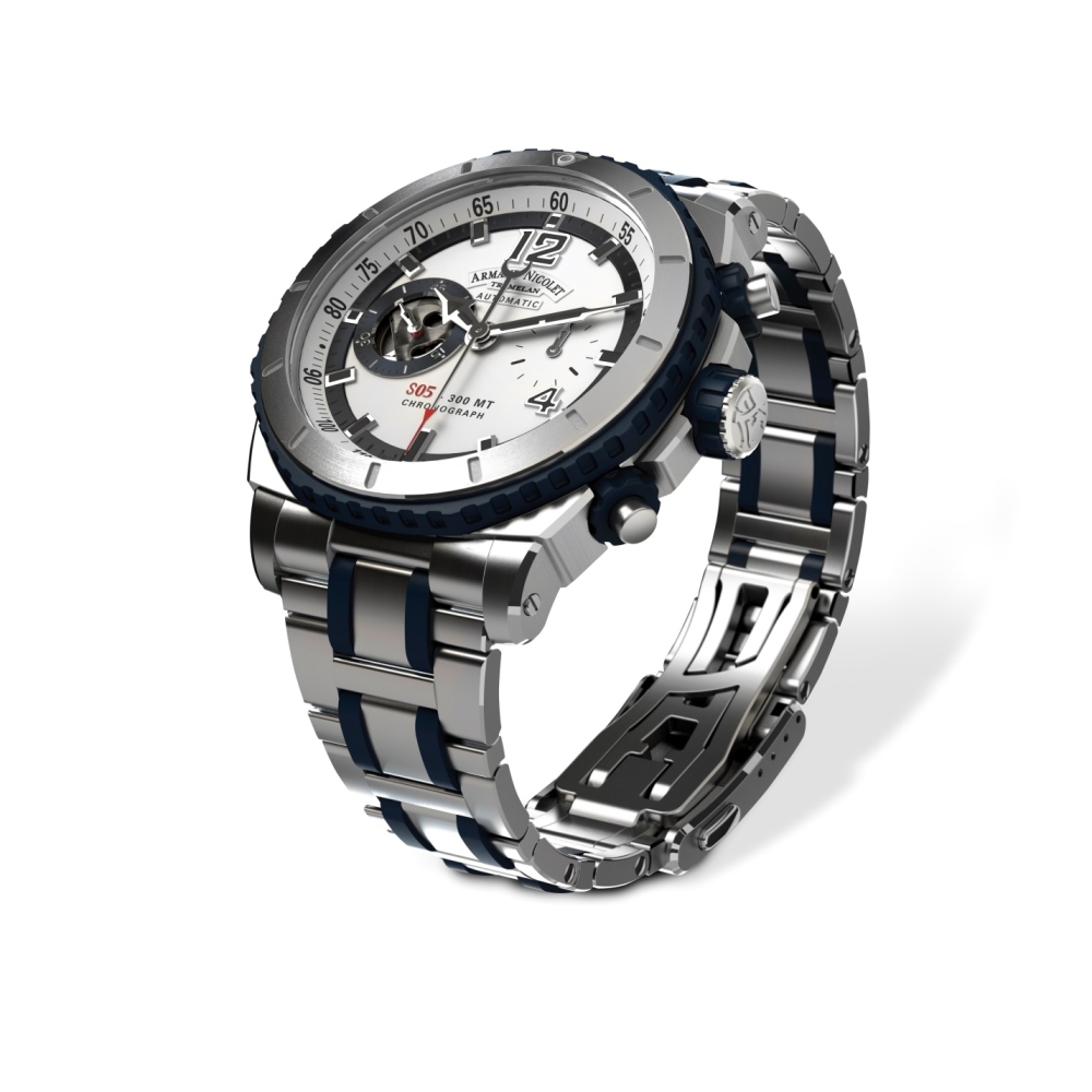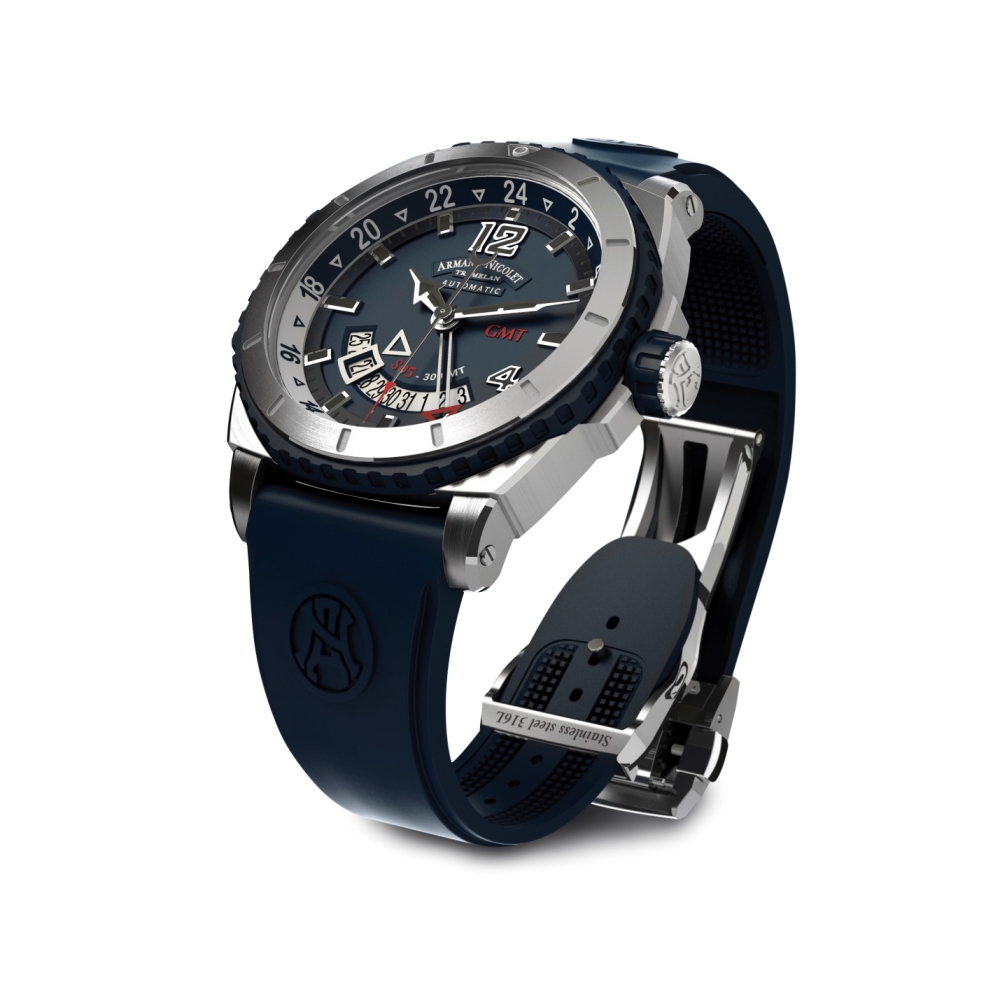 – В этом году Armand Nicolet выпустил первую коллекцию спортивных часов L09, серия всего 450 экземпляров. Модель выполнена в титановом корпусе с черным DLC-покрытием, в качестве «двигателя» часов мы использовали переработанный механизм 1957 года UT 600, превращенный в калибр AN0711A с ручным заводом и 36-часовым запасом хода. Еще одна спортивная новинка – дайверские часы – S05 GMT Diver.