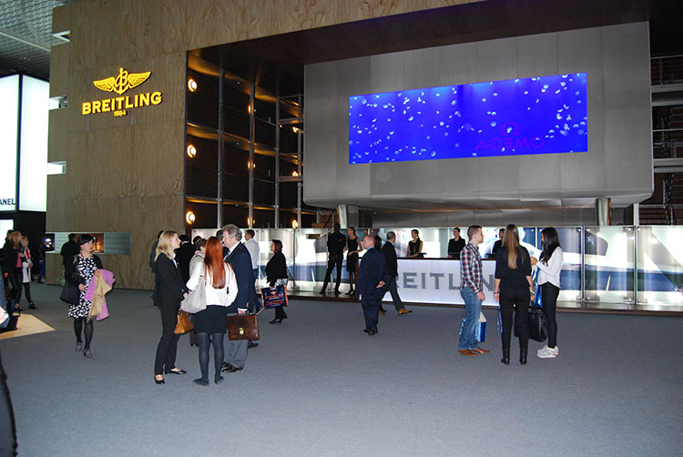 Часовые бренды не стали кардинально сокращать площади экспозиции или менять концепцию оформления, допустим, Breitling смонтировали привычный аквариум – в этом году его населили медузами.