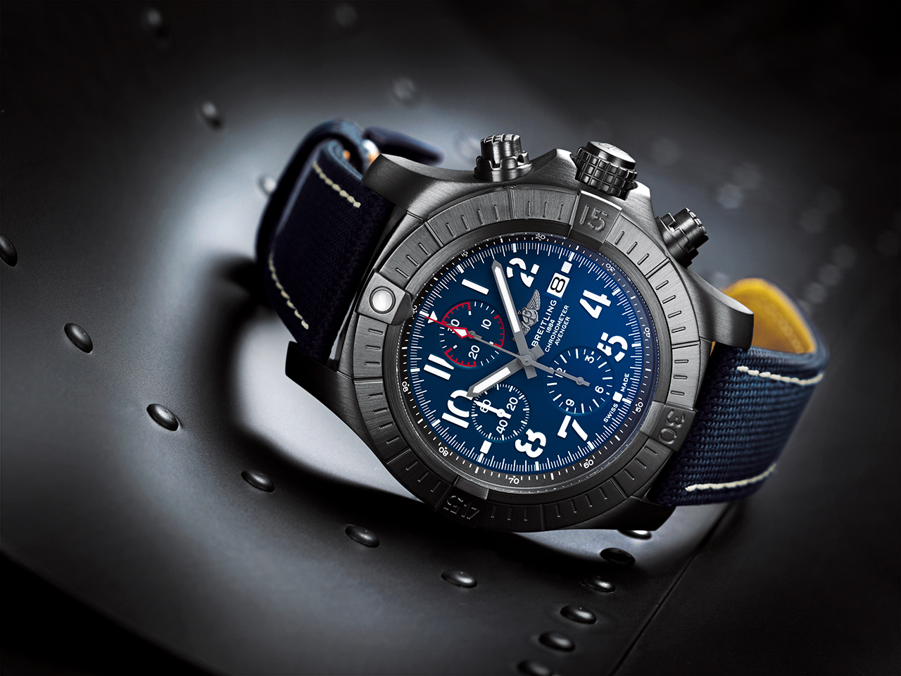 Breitling Avenger Chronograph 45 – классическая модель для пилотов. Эти часы имеют 45-миллиметровый корпус из нержавеющей стали, оснащенный вращающимся в одном направлении безелем с храповым механизмом. Циферблат выполнен в черном или синем цвете. Модель с черным циферблатом предлагается в комплекте с браслетом из нержавеющей стали с раскладной застежкой-клипсой либо кожаным армейским ремешком антрацитового цвета с
