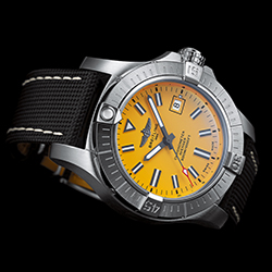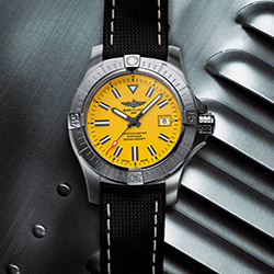 Модель Breitling Avenger Automatic 45 Seawolf входит в коллекцию классических часов для пилотов. При этом она имеет дополнительные функции, которые делают эти часы надежным спутником для исследователей мирового океана. На 45-миллиметровом корпусе из нержавеющей стали установлен вращающийся в одном направлении безель с храповым механизмом. Выполненная из титана задняя крышка крепится с помощью винтов. Запас хода механического калибра Breitling Caliber 17 с автоподзаводом составляет около 38 часов. Корпус этих часов, готовых служить вам как в воздухе, так и в воде, украшен циферблатом ярко-желтого цвета. Модель представлена в комплекте с кожаным армейским ремешком антрацитового цвета с классической или раскладной застежкой либо с браслетом из