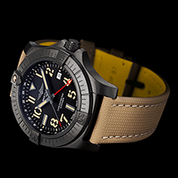 Модель Breitling Avenger Automatic GMT 45 отлично подойдет активным путешественникам. Помимо центральной часовой, минутной и секундной стрелок она оснащена дополнительной стрелкой индикации времени во втором часовом поясе. На стрелки и индексы нанесено люминесцентное покрытие Super-LumiNova®, повышающее удобство считывания времени при любом уровне освещенности. Часовой механизм, помещенный в 45-миллиметровый корпус из нержавеющей стали с циферблатом синего цвета, сертифицирован Швейцарским институтом официального тестирования хронометров (COSC). Запас хода механического калибра Breitling Caliber 32 с автоподзаводом составляет около 42 часов. Модель представлена в комплекте с кожаным армейским ремешком с классической или раскладной застежкой либо с браслетом из нержавеющей стали с раскладной застежкой-клипсой. Легкий и надежный 45-миллиметровый корпус Breitling Avenger Automatic GMT 45 Night Mission изготовлен из титана с высокопрочным углеродным покрытием (DLC). Арабские цифры на циферблате напоминают номера военных самолетов, нанесенные на борт с помощью трафарета. Циферблат часов выполнен в черном цвете. Дополняет модель кожаный армейский ремешок песочного цвета с классической или раскладной застежкой. Водонепроницаемость каждого экземпляра Avenger Automatic GMT 45 – до 30 бар (300 м).