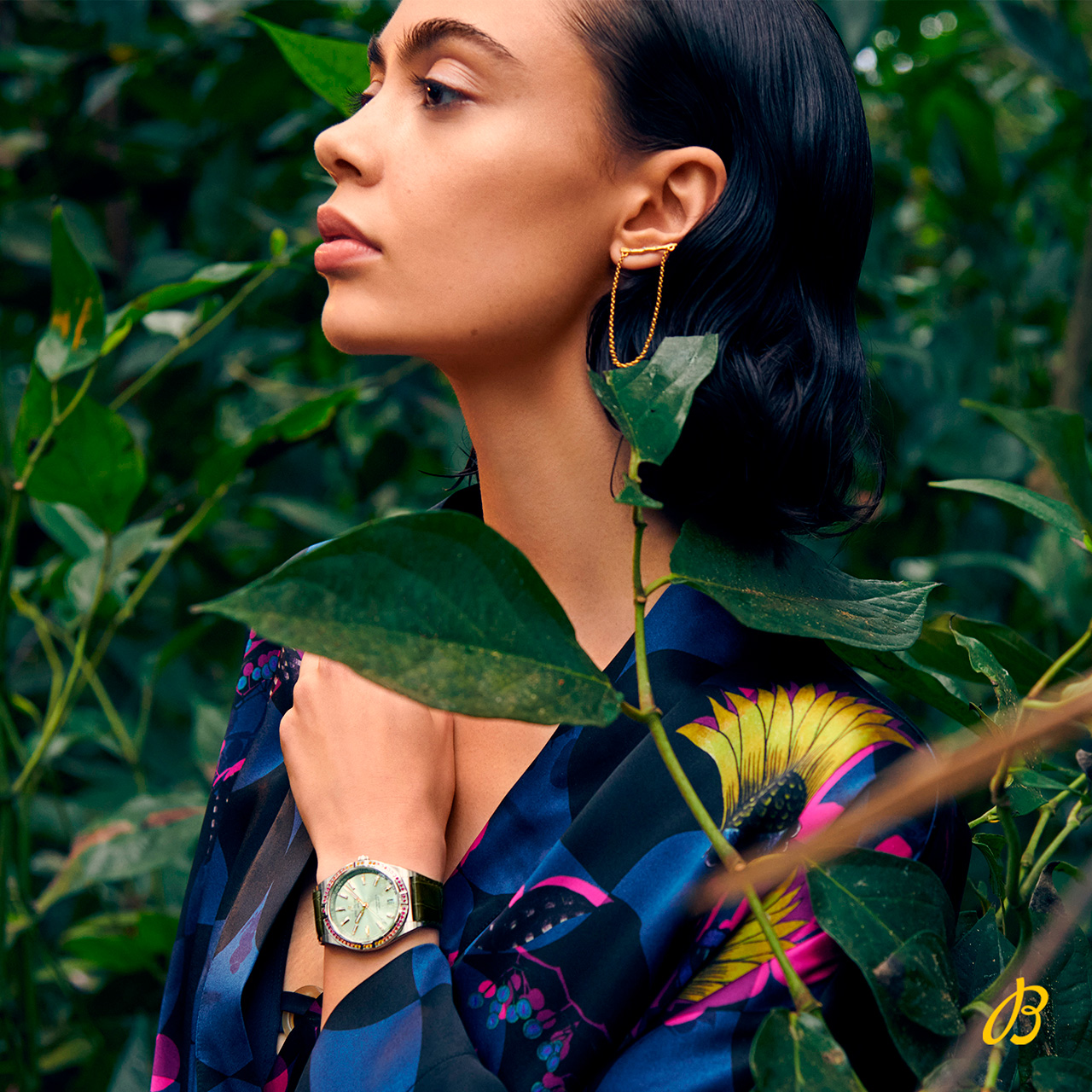 Часы из новой капсульной коллекции Chronomat Automatic 36 South Sea легко узнать по специальным лакированным циферблатам в бежевом, полуночном синем и мятно-зеленом цвете, а также безупречно подобранным ремешкам из кожи аллигатора с раскладными застежками. Особого внимания заслуживают золотые индексы и стрелки, не говоря уже об инкрустированных бриллиантами часовых маркерах и украшенных драгоценными камнями радужных оттенков безелях.