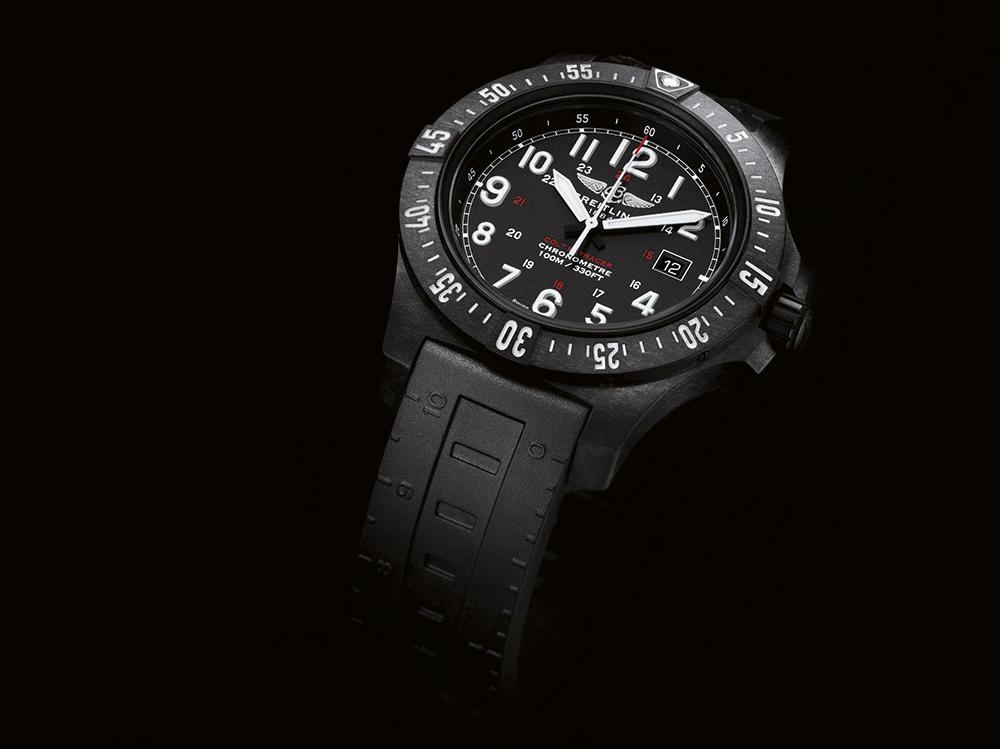 Лидер по легкости и прочности. Корпус часов диаметром 45 мм изготовлен из материала Breitlight®, который в 3,3 раза легче титана и в 5,8 раз легче стали, но при этом значительно прочнее. Этот уникальный высокотехнологичный материал отличается рядом свойств: повышенной устойчивостью к механическим воздействиям, трению и коррозии; антимагнитными, антиаллергенными свойствами. На ощупь он теплее, чем металл, а легкий крапчатый эффект подчеркивает его оригинальность.