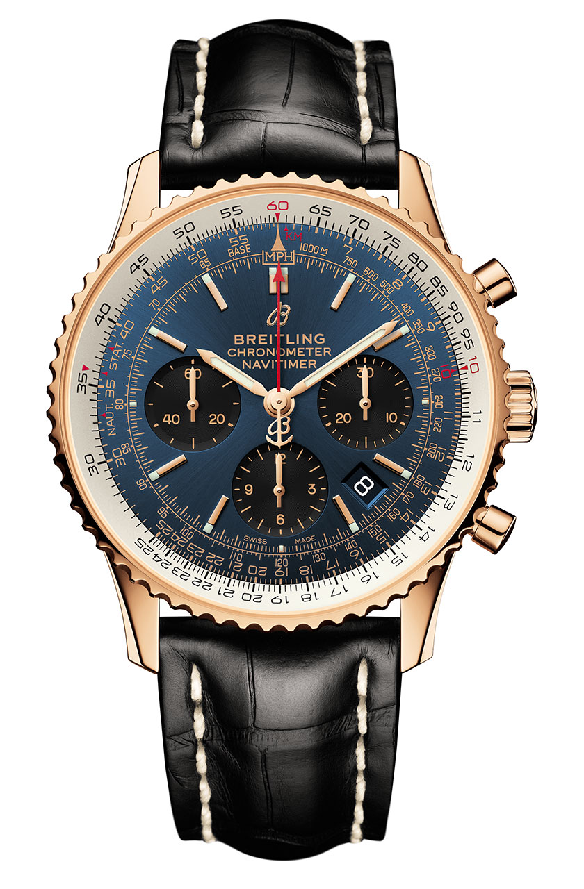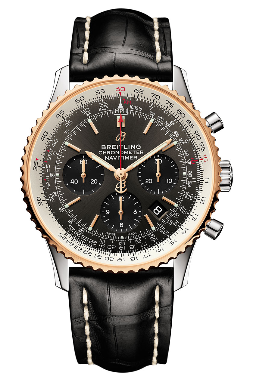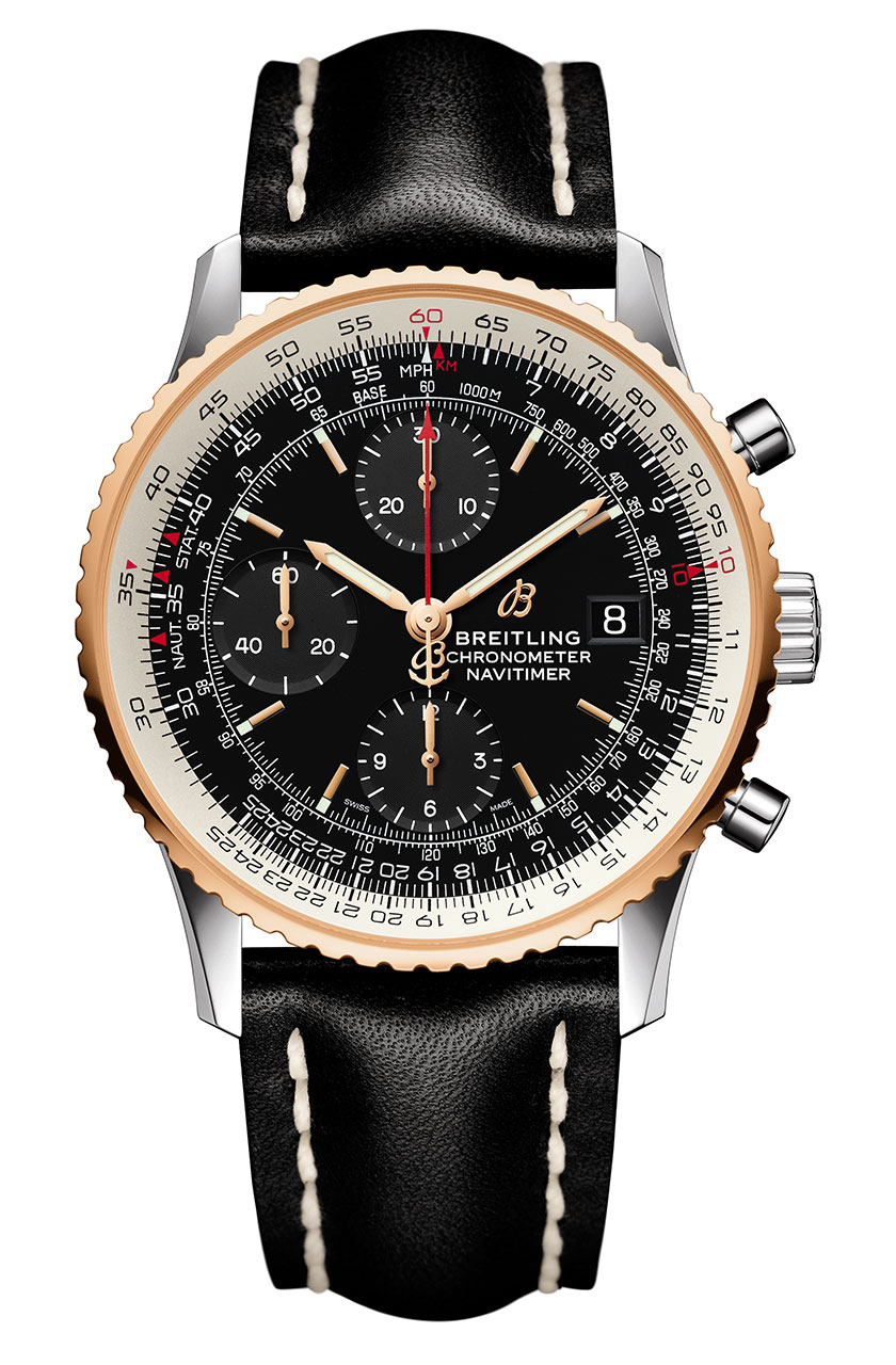 Модель Navitimer 1 Chronograph 41 привлечет внимание поклонников часов небольшого размера. Хронограф с черным циферблатом выполнен из стали и 18-каратного красного золота, с вращающимся в оба направления безелем из красного золота. Дополняет часы черный кожаный ремешок. В линейке также представлен более яркий вариант из нержавеющей стали с серебристым циферблатом и коричневым кожаным ремешком. Обе модели оснащены классической круглой логарифмической линейкой Breitling, которая долгое время ассоциировалась с хронографами Navitimer.