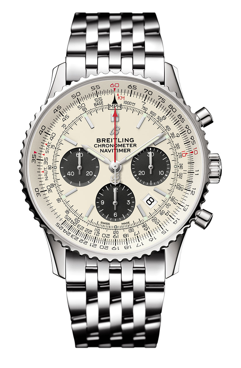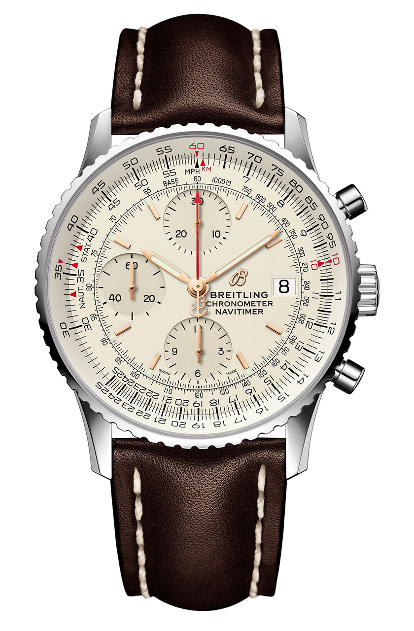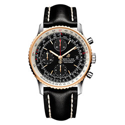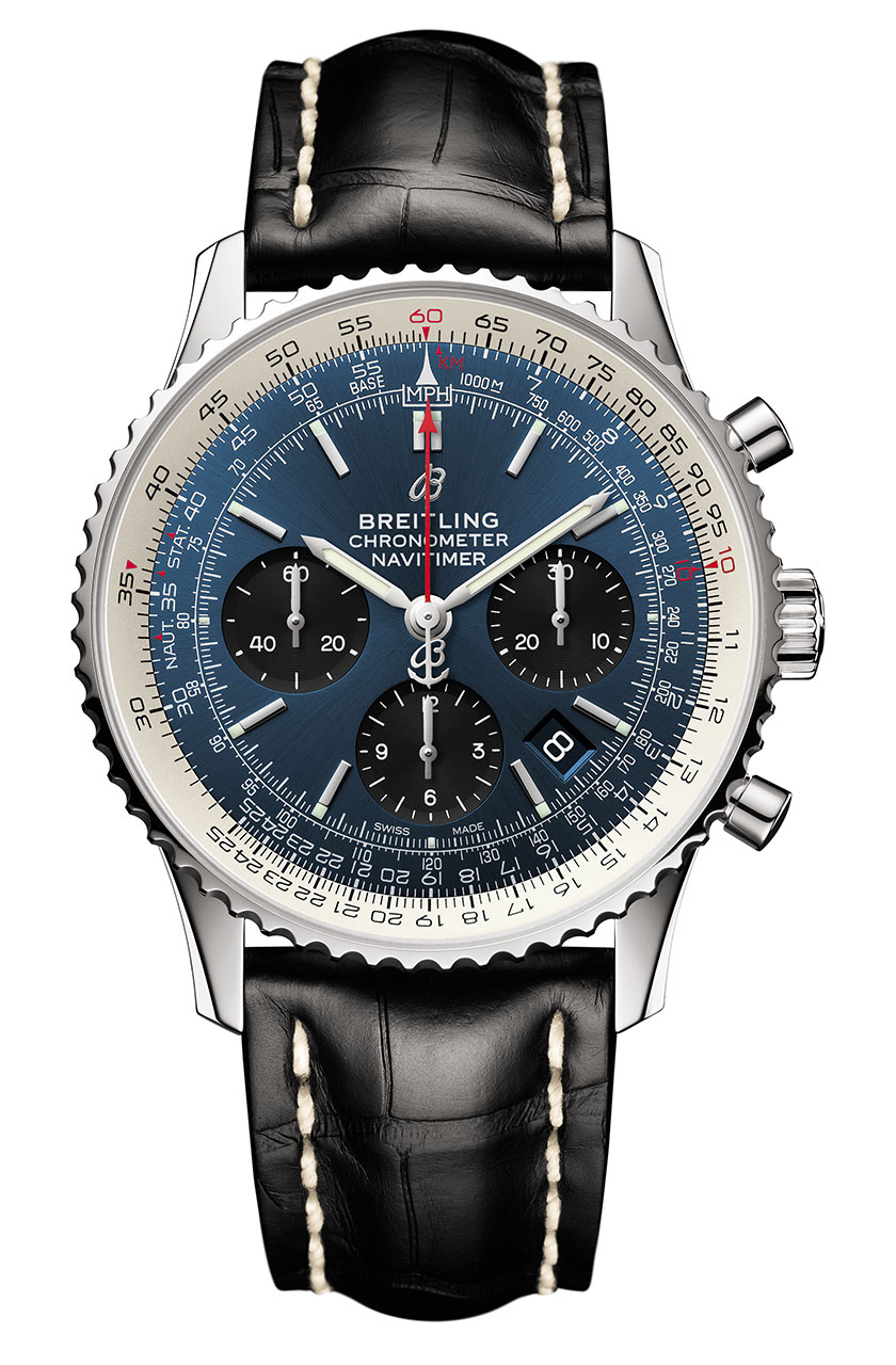 Модель Navitimer 1 Chronograph 41 привлечет внимание поклонников часов небольшого размера. Хронограф с черным циферблатом выполнен из стали и 18-каратного красного золота, с вращающимся в оба направления безелем из красного золота. Дополняет часы черный кожаный ремешок. В линейке также представлен более яркий вариант из нержавеющей стали с серебристым циферблатом и коричневым кожаным ремешком. Обе модели оснащены классической круглой логарифмической линейкой Breitling, которая долгое время ассоциировалась с хронографами Navitimer.
