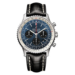 Два других варианта из модельного ряда выполнены в корпусе из нержавеющей стали. Один экземпляр – с синим циферблатом и черным ремешком из кожи аллигатора, второй – с серебряным циферблатом и классическим браслетом Navitimer из нержавеющей стали.