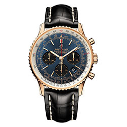 Модель Navitimer 1 B01 Chronograph 43 представлена в четырех роскошных версиях. Наиболее элегантная из них выполнена в корпусе из 18-каратного красного золота, с синим циферблатом и черным ремешком из кожи аллигатора. Не менее привлекательно выглядит модель из нержавеющей стали и 18-каратного красного золота с серым циферблатом Stratos Gray. Часы оснащены черным ремешком из кожи аллигатора.