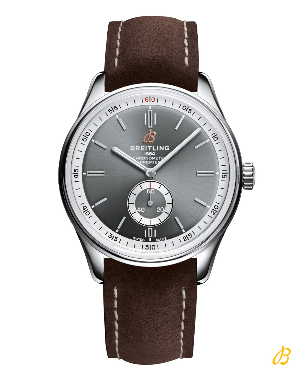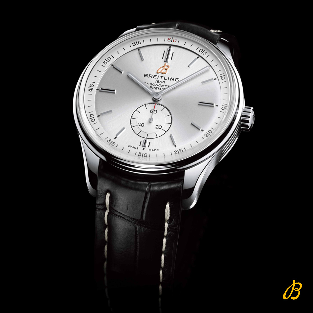 Модель Premier Automatic 40 является олицетворением повседневного стиля. Эта модель напоминает собой элегантные часы Breitling 40-х годов. Внутри ее корпуса из нержавеющей стали установлен Breitling Caliber 37 – механизм с автоподзаводом. Поставляется с циферблатами антрацитового, синего или серебристого цветов. Циферблаты всех цветов доступны с черным ремешком из нубука или кожи аллигатора, либо с браслетом из нержавеющей стали. Циферблат без излишних деталей окружает белый безель с минутной шкалой, а в положении «6 часов» на нем располагается небольшой секундный дополнительный циферблат.